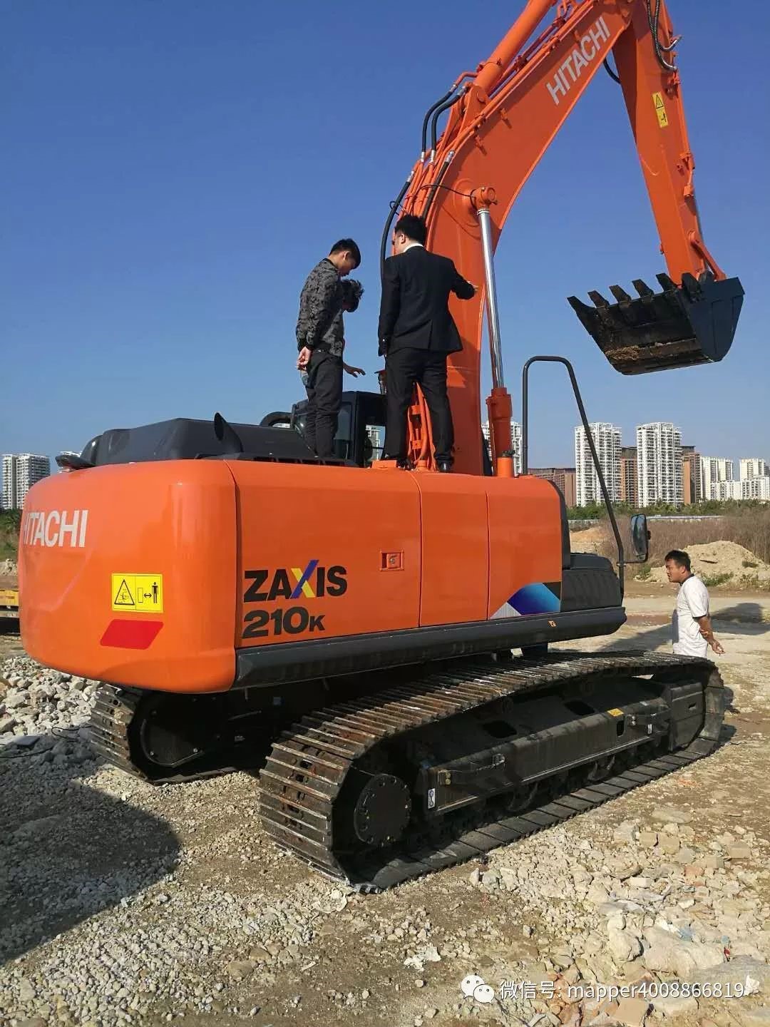 在展會開始之前,由趙兵總監(jiān)及日立都業(yè)圣先生在機(jī)器擺放場地,實(shí)地為客戶講解日立再生認(rèn)證機(jī)及ZX210K-5A新機(jī)。