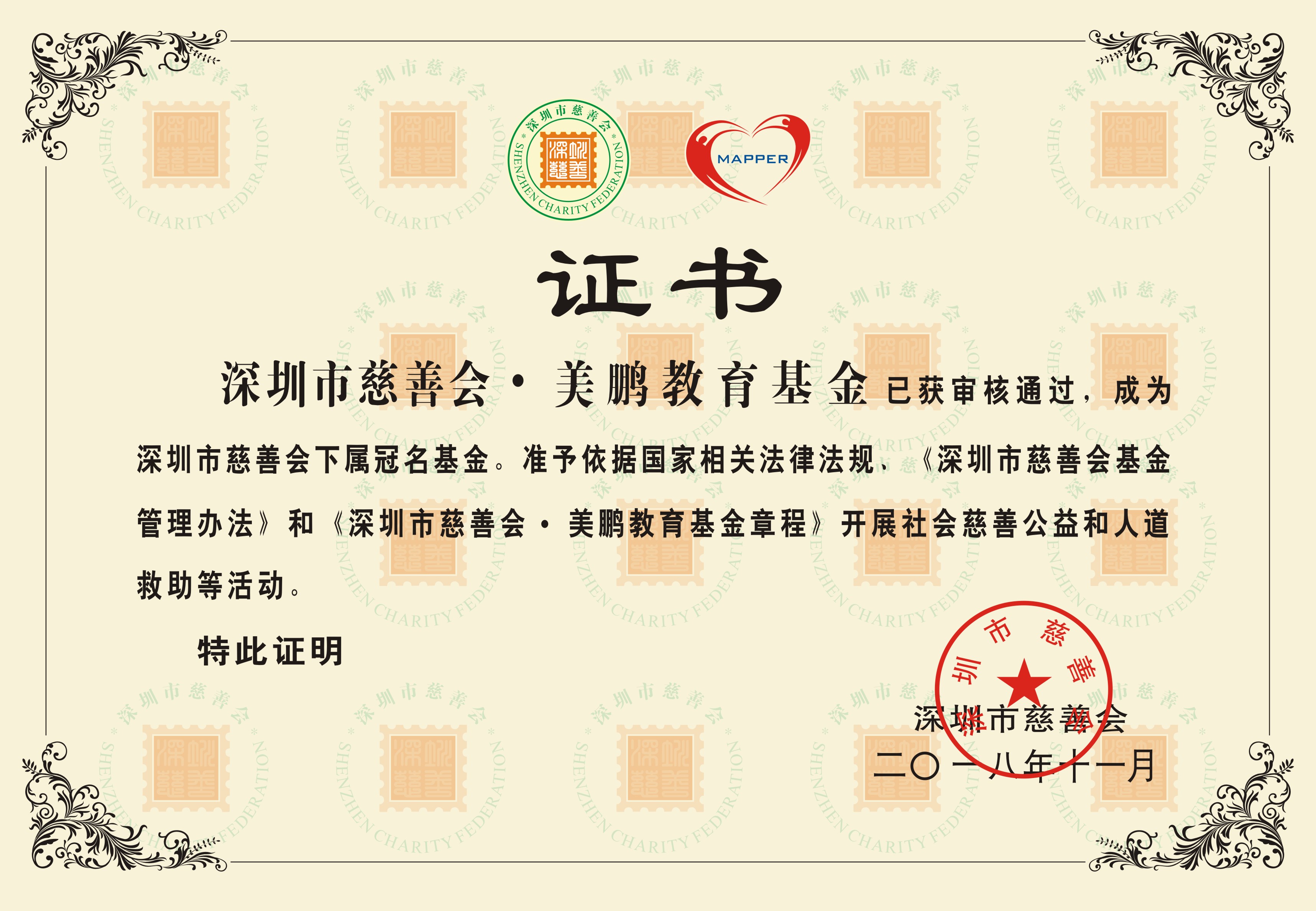 2018年12月6日,美鵬教育基金會(huì)會(huì)長(zhǎng)楊莉受邀參加深圳市慈善會(huì)的基金授牌儀式,現(xiàn)場(chǎng)接受慈善會(huì)頒發(fā)的授權(quán)證書,這意味著深圳市慈善會(huì) · 美鵬教育基金正式成立。