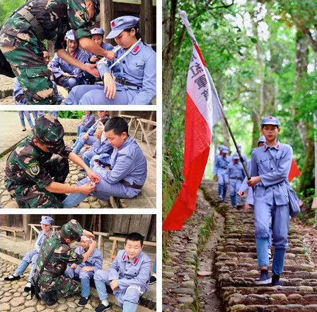孩子們重走紅軍路,包括在路途上學習傷口處理,親身體驗到紅軍的艱辛,感受紅色文化,傳承紅軍精神,"不忘初心,牢記使命,堅定信念"。